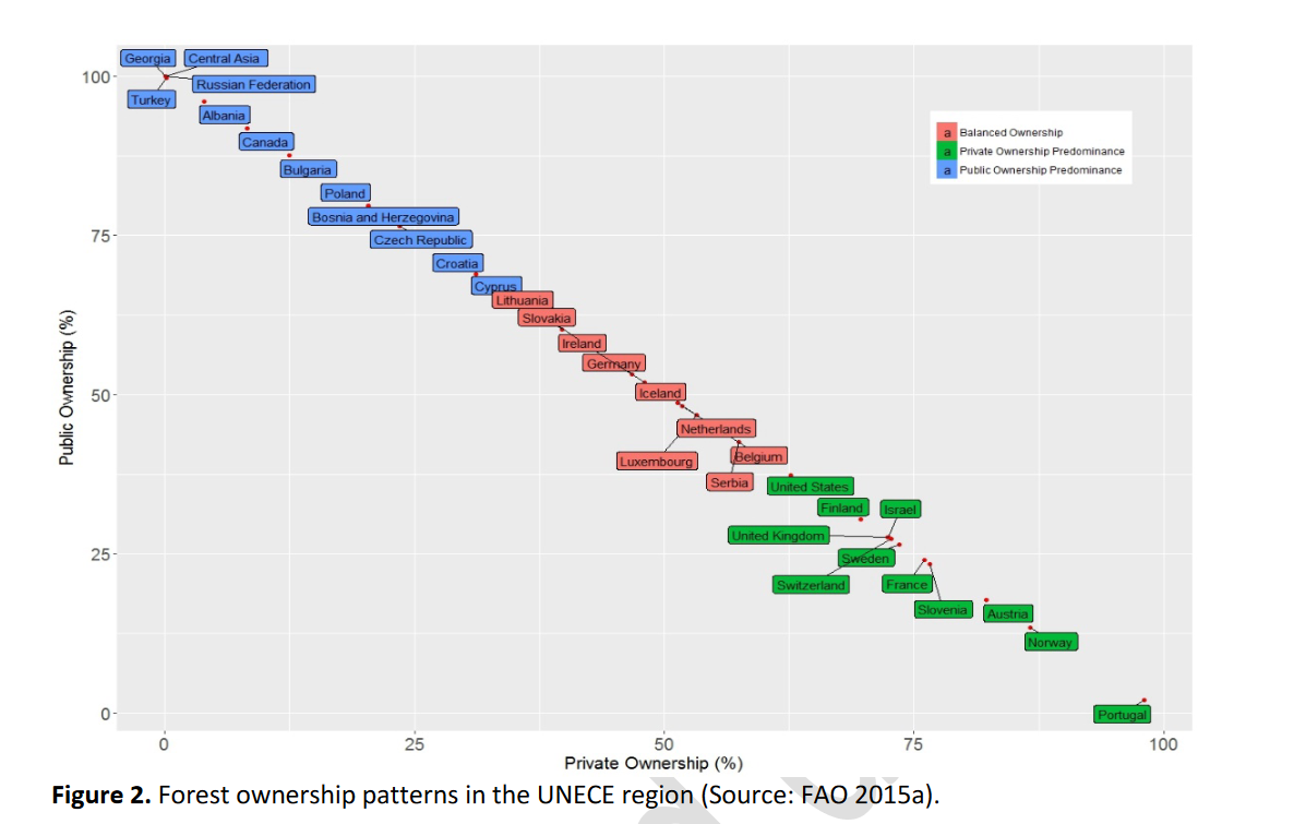 Gozdovi v zasebni oziroma državni lasti. Vir: FAO; UNECE