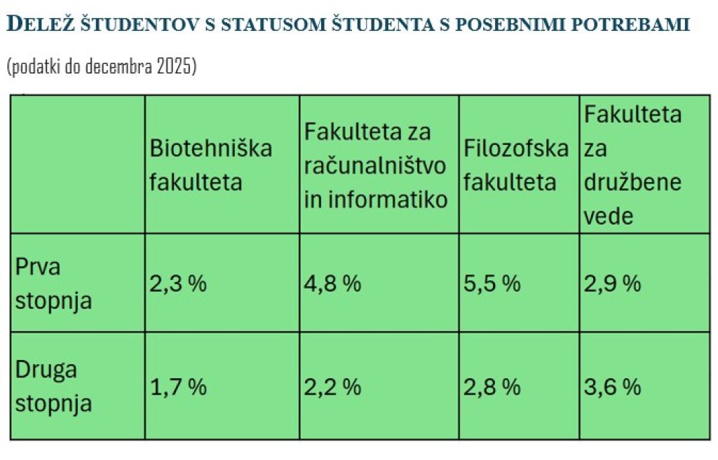 Na Biotehniški fakulteti odgovarjajo, da se delež študentov s statusom posebnih potreb ni bistveno spremenil.