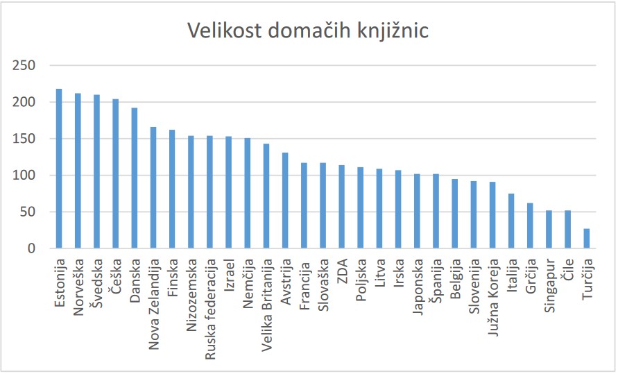 Velikost domačih knjižnic v 31 razvitih državah, baza PIAAC (vir: jakrs.si)