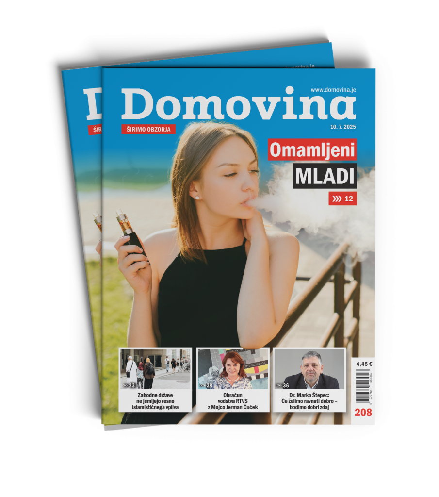 V 208. številki tednika Domovina se posvečamo omami mladih. Vsaj ena tretjina se jih omamlja z nikotinom, prednjačijo dekleta. Slovenci smo tudi veliki uporabniki konoplje. O tem, da bi Svoboda rada uporabo konoplje legalizirala in kaj o tem meni stroka, piše Tina S. Bertoncelj. O uporabi tobačnih in nikotinskih izdelkov med mladimi piše Peter Avsenik, ki se je pogovarjal tudi z Barbaro Stožir Curk. Pogovor z njo je segel tudi v sfero preventive in kurative.