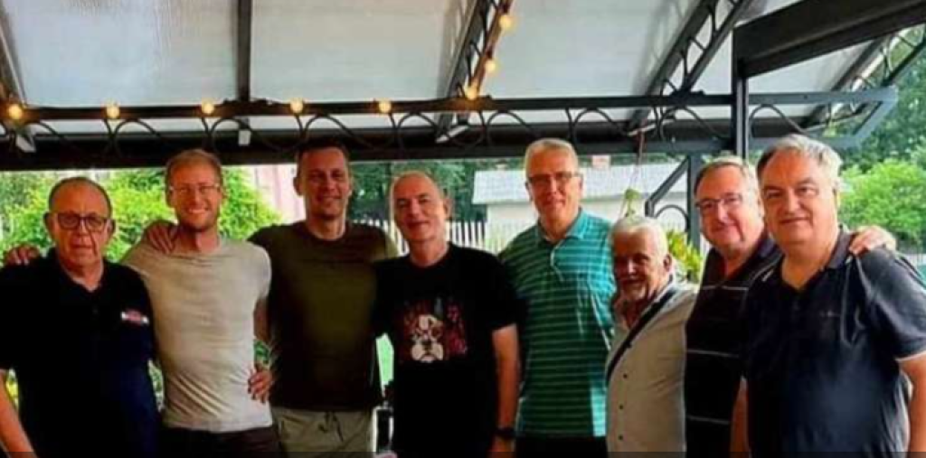 Pavšer naj bi zato protestno odšel na bolniško. Viri z vodstva RTV so nam potrdili, da je na dolgotrajni bolniški zato je bilo toliko bolj bizarno, ko smo ga lahko videli na zabavi v Postojni. Tam se je zabaval in popival v družbi z nekaterimi znanimi športniki, med njimi je bil tudi Peter Vilfan, znan košarkar in politik stranke ljubljanskega župana Zorana Jankovića in kasneje Stranke Alenke Bratušek. Peter Vilfan je na svojem Facebook profilu objavil spodnjo fotografijo iz zabave, na kateri je drugi z leve veseli Franci Pavšer.