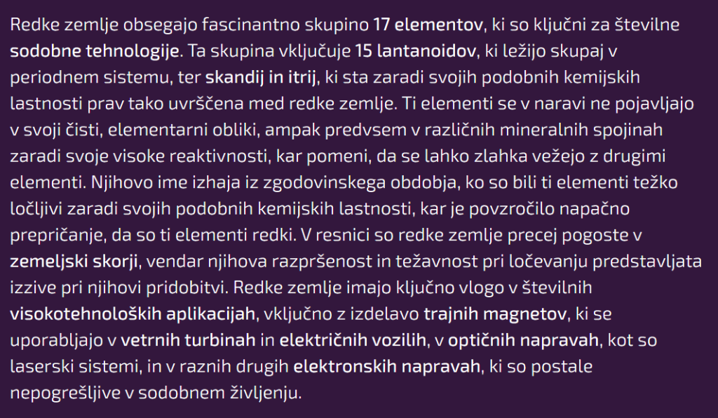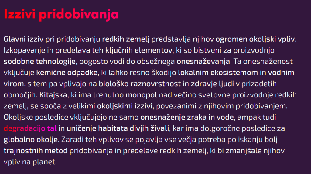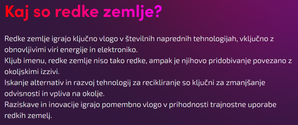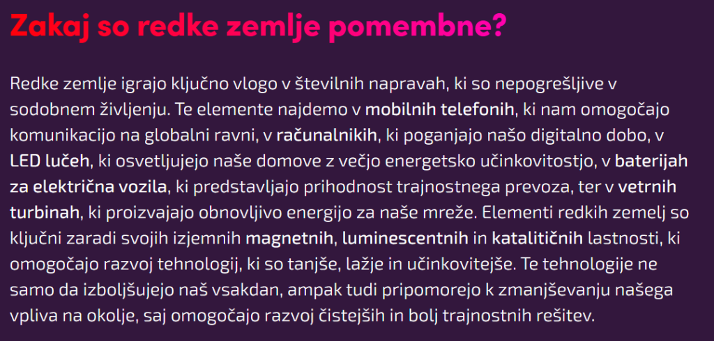 Pustimo ob strani ironijo in cinizem ekologov, ki na eni strani zahtevajo nič izpustov in uvedbo izključno sončne in vetrne energije, po drugi strani pa so zagrizeni nasprotniki čiste jedrske energije in izkopa redkih zemelj, ki so nujno potrebne ravno za obnovljive vire energije. Evropska strategija je zato uvedla formulo – 10% domače proizvodnje redkih zemelj, 40% predelave in 25% reciklaže do leta 2030, s tem naj bi se, po obrazložitvi EU, fokusirala na bolj kvalitetne elemente uporabnega ekosistema redkih zemelj. Ne glede na optimizem pa EU zaostaja za lastnimi načrti.