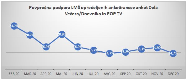 Povprečna podpora javnomnenjskih anket v zadnjih treh mesecih: 12,7 % opredeljenih sodelujočih