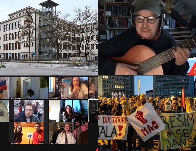 Zadnjega v vrsti ekscesov si je privoščil tamkajšnji profesor filozofije, sicer tudi znani kantavtor Jani Kovačič. Pretekli petek je Kovačič sodeloval na protestnem koncertu na daljavo, imenovanem Glas upora, ki ga je vodil znani protestnik Jaša Jenull, prek video-povezave pa so sodelovali različni nastopajoči, med drugim tudi Kovačič. Petkovo protestiranje je bilo namreč zaradi zaprtja države prepovedano.