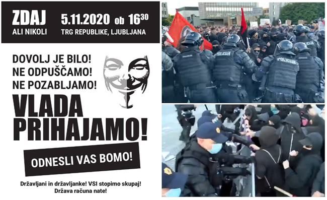 V Sloveniji pa smo na novembrskem nasilnem protivladnem protestu, kjer so jo skupili policisti in novinarji, gledali takšne prizore: