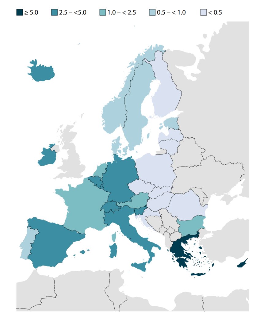 Kaj pa podatki za Evropsko unijo? Podatki Eurostata za leto 2024 kažejo, da je na področju zakonitih migracij delež državljanov tretjih držav največji na Malti, kjer znaša 20,4 odstotka. Na drugem mestu je s 16,3 odstotka Estonija. Delež je najnižji na Slovaškem, kjer znaša le 0,4 odstotka. Slovenija je z 8,6 odstotka nekoliko nad povprečjem EU (6,5 odstotka). Največ migrantov je lani za azil prvič zaprosilo v Grčiji. Teh je bilo 6,63 (preračunano na 1.000 prebivalcev). Število je najnižje na Madžarskem, kjer lani nihče ni zaprosil za azil. Slovenija je z 2,57 prosilca za azil na 1.000 prebivalcev nekoliko nad povprečjem EU (2,03). Med evropskimi prosilci za azil so bili lani na prvem mestu prepričljivo Turki (47.105), med afriškimi Egipčani (23.950) in Maročani (22.645), med ameriškimi Venezuelci (72.850) ter med azijskimi Sirci (150.305). Slednji s 16,4 odstotka predstavljajo največji delež prosilcev za mednarodno zaščito.