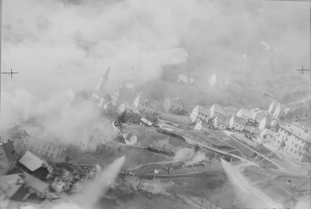 Spomladi leta 1945, na pragu konca druge svetovne vojne, so nad Idrijo večkrat priletela »zavezniška« letala in raketirala mesto. V osmih zračnih napadih je bilo ubitih od 12 do 15 civilistov, v mestu in na rudniških objektih pa so letala povzročila v