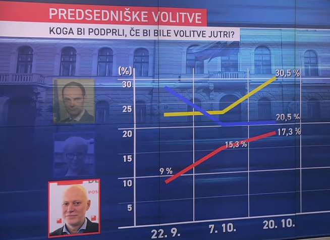 Raziskovalec javnega mnenja in analitik Andraž Zorko je v oddaji 24ur zvečer opozoril, da se je padanje podpore Nataši Pirc Musar umirilo, prav tako pa se je umirila rast podpore Milanu Brglezu. "Razlika treh odstotnih točk in pol pa ni takšna, da bi lahko kandidatka Pirc Musar do nedelje zvečer mirno spala," pravi Zorko.
