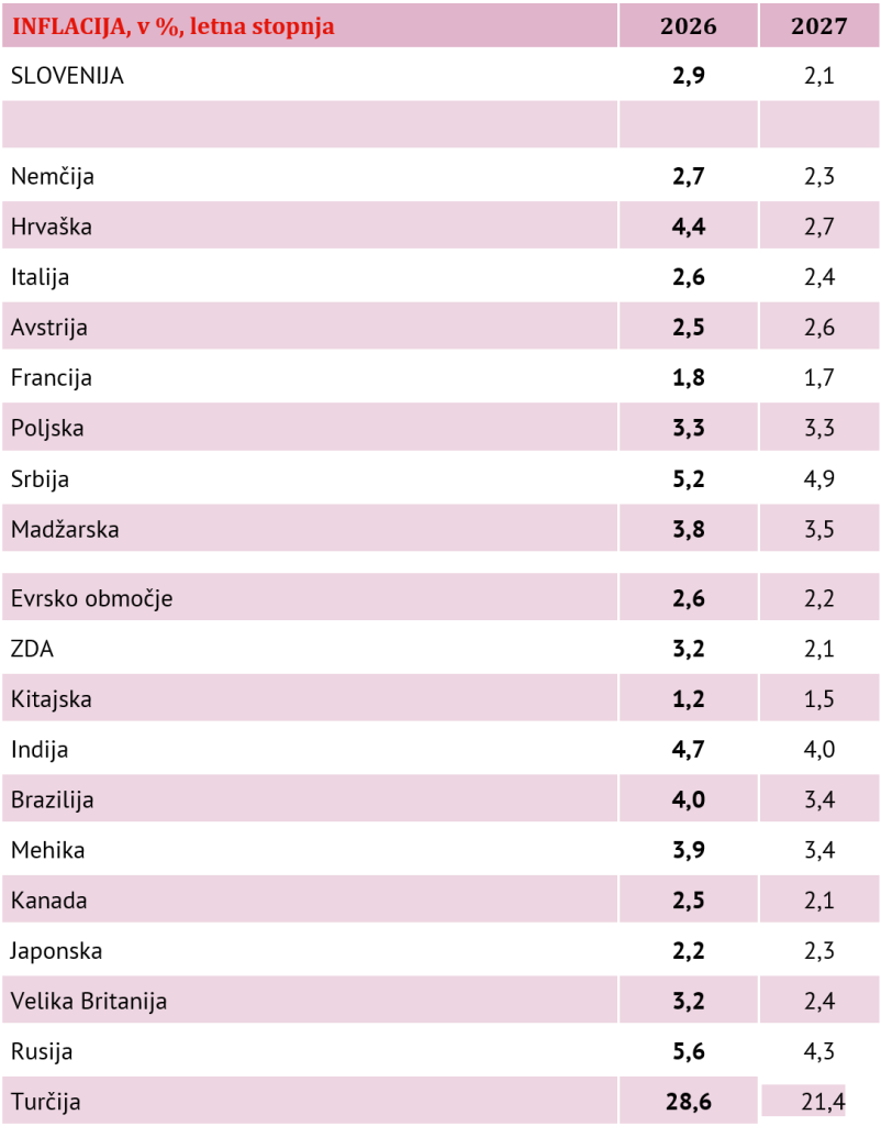 - Avstrija: rast 0,7 % – kot ena najtesnejših gospodarskih partneric neposredno vpliva na slovenske izvoznike.