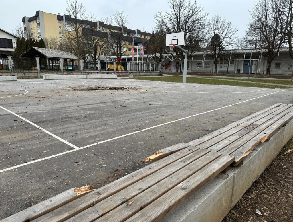 V letu 2025 so v soseski Planina ob asfaltiranem košarkarskem igrišču namestili šest novih betonskih klopi s trpežnim sedalom iz macesnovih lepljencev. »Gre za pomembno dopolnitev športne infrastrukture, ki ste jo stanovalci in obiskovalci že dolgo pričakovali,« je decembra krajevna skupnost sporočila v svojem biltenu Novice s Planine in poudarila, da Planina tako ponuja tudi urejen, prijazen in živahen javni prostor. Na silvestrovo se je izkazalo, da je ta javni prostor še preveč živahen, klopi pa premalo trpežne. Nove klopi so namreč že uničene, stanovalci pa se sprašujejo, ali ne bi bilo bolje igrišča spremeniti v parkirišče. Kot je prebrati na socialnih omrežjih, se tam večinoma zadržujejo lokalni vandali, brezdomci, pijanci in narkomani, med prazniki pa se igrišče spremeni v nevarno bojišče.