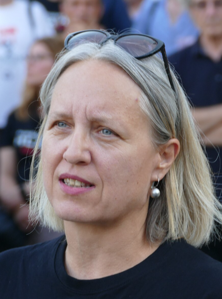 Pred stavbo RTVS je na enem od novinarskih shodov na začetku marca 2022 v času Janševe vlade dejala, da so bili »v četrtek že dan pred oddajo deležni političnega napada, še preden smo karkoli objavili. Na dan oddaje so potem sledila svarila znotraj hiše glede gostov, koncepta, vodenja. Nato se je ponovno vmešala politika s pogojevanjem gostov in nazadnje še sam premier, ki nas je označil za proruske ekstremiste … Tudi tokrat ni šlo brez pozivov k našim zamenjavam in sankcioniranju, česar smo bili do zdaj že večkrat deležni, tudi prek programskega sveta.« Tedanji predsednik vlade Janez Janša je namreč na omrežju twitter (zdaj X) po oddaji Tarča, v kateri so obravnavali napad Rusije na Ukrajino (nekaj dni po napadu) in vlogo Slovenije v tej vojni, ustvarjalce oddaje označil za proruske ekstremiste in da se za to opravičuje Evropski uniji in Natu ter posebej Ukrajincem, saj da vlada na takšno poročanje nima vpliva.