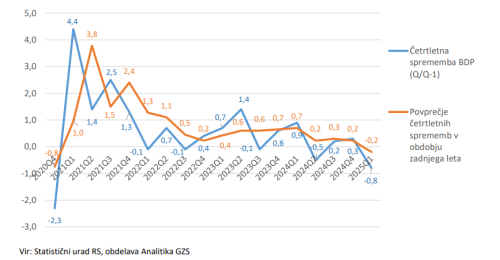 Padec BDP v prvih treh mesecih v višini 0,8 odstotka je po oceni GZS skrb zbujajoč, saj predstavlja prvi četrtletni padec v zadnjih treh četrtletjih in največji padec v zadnjih štirih letih. »Sprašujemo se, kaj se mora še zgoditi, da bodo v vladi zazvonili alarmi, da v Sloveniji nekaj delamo narobe,« je na novinarski konferenci izpostavil glavni izvršni direktor Gospodarske zbornice Slovenije (GZS) Mitja Gorenšček.