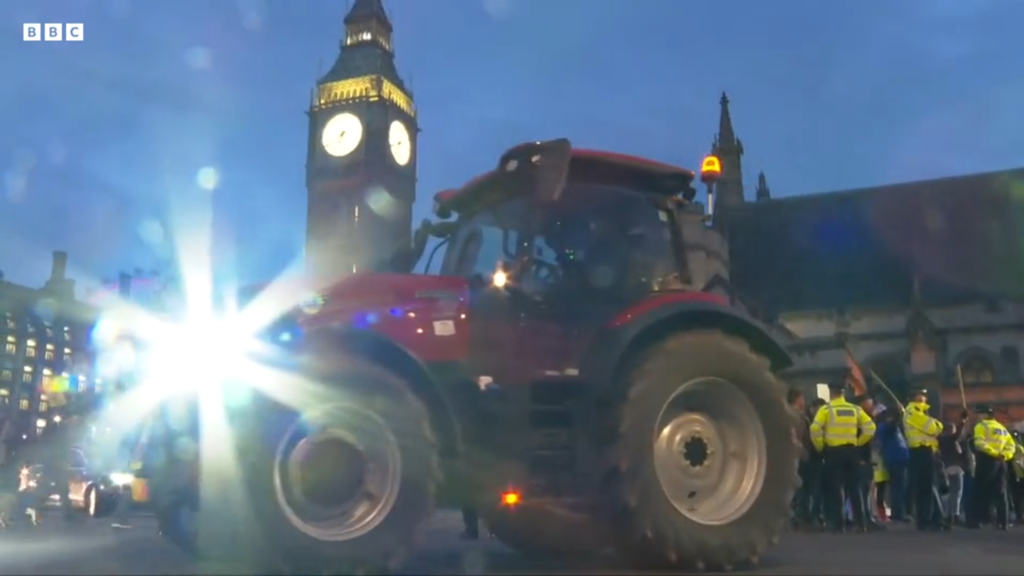 Več kot 100 traktorjev se je peljalo mimo parlamenta, medtem ko so kmetje protestirali proti, kot pravijo, pomanjkanju podpore za proizvodnjo hrane v Združenem kraljestvu.