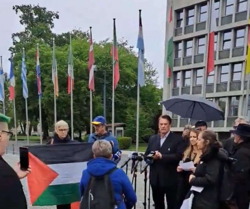 Predstavnice več nevladnih organizacij so danes na Trgu republike pozvale vlado, naj Palestincem v Gazi ponudi zatočišče v Sloveniji s pomočjo sistema dopolnilnih poti. To pa je zmotilo upokojensko iniciativo, ki so medtem peli slovensko himno, ter vzklikali: »Za Slovenijo, ne za smrdljivi Hamas!« Eden izmed upokojencev pa je dodal : »Stran s to zastavo. To je Slovenija. Sramota. Klošarji.«