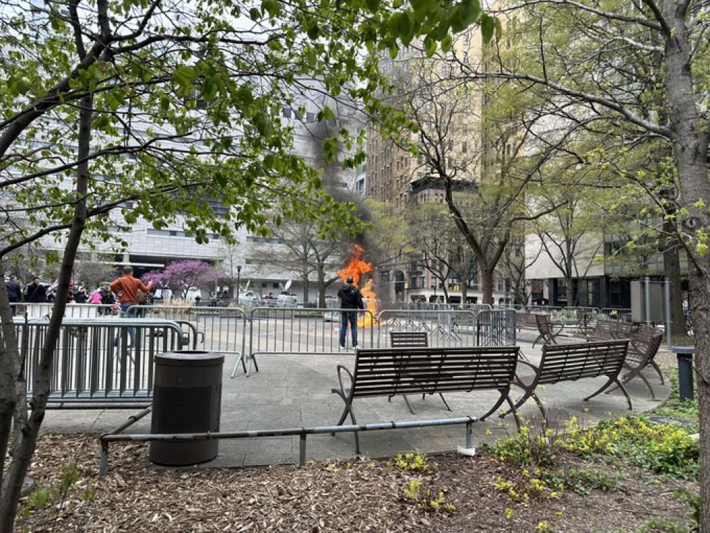 Horrific scenes near the Manhattan courthouse where Donald Trump is on trial as a man set himself on fire. It is unknown currently why this man did it but his act mirrors the far-left man who was praised for setting himself on fire for Palestine in Feb. https://t.co/huoxAUBiF2