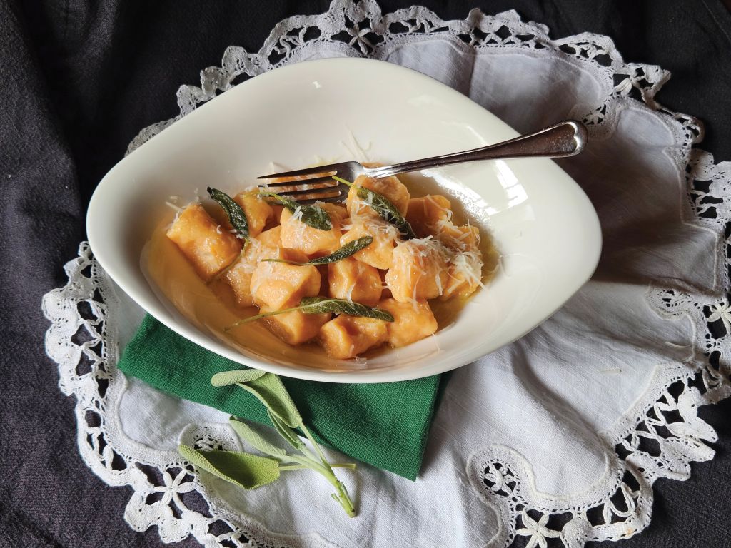 Njoki iz sladkega krompirja na maslu z žajbljem