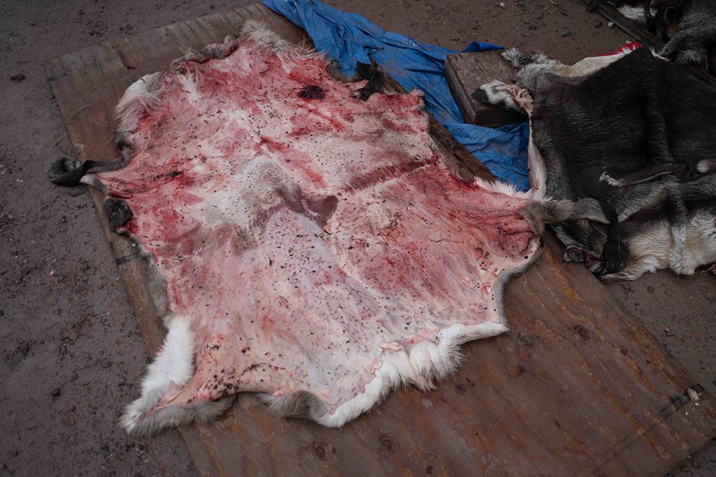 Karibujevo kožo se uporablja predvsem za podlago za sedenje na snegu, saj zelo dobro greje. Danes se je ne uporablja več toliko za oblačila. Foto: Timotej Cvirn in Jaka Mojškerc