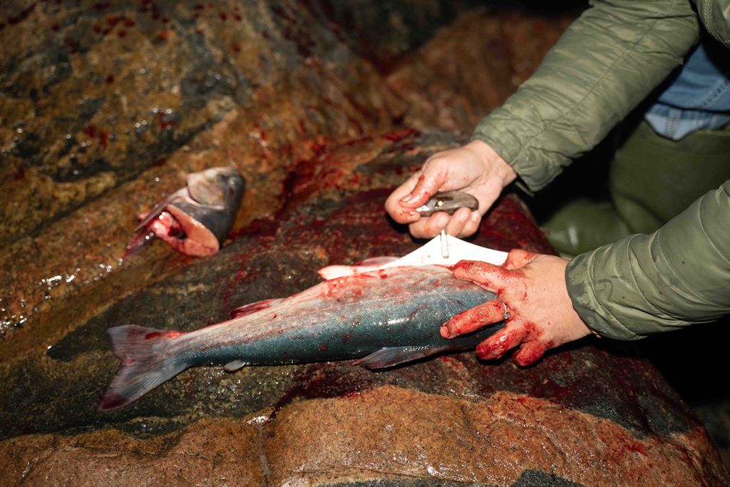 Ulovljene ribe je treba očistiti kar na licu mesta. Foto: Timotej Cvirn in Jaka Mojškerc
