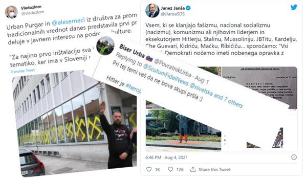 Leva opozicija v objavi predsednika vlade seveda ni prepoznala nedvoumne obsodbe nacionalsocialističnega izpada dotičnega posameznika. O zavrženosti vseh treh totalitarizmov je čivknil tudi predsednik NSi, Matej Tonin, kar prav tako ni »potešilo« levice, hkrati pa je razjezilo avtorja tvita o Hitlerju kot heroju. A nekaj o tem še kasneje.