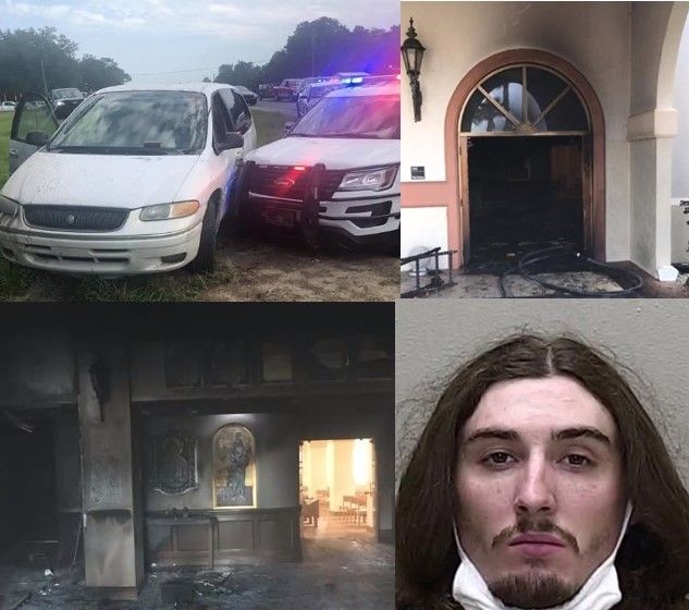 V soboto je v zvezni državi Florida moški zapeljal z avtomobilom v notranjost cerkve in polil bencin, nato pa cerkev požgal. Osumljenec je nato iz kraja prizorišča zbežal, a so ga policisti prejeli in pridržali.