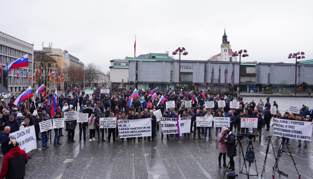 Gotovo več kot 500 predstavnikov slovenskih kmetov se je danes zbralo pred parlamentom, kjer so v mirnem protestnem shodu izrazili nestrinjanje z vladnimi ukrepi na področju kmetijstva. Vlada se je prepričanju protestnikov iz njih norčuje. »Tisti, ki odločajo, govorijo o kmetijstvu, kot da gre za hobi, kot da je hrana samoumevna,« je v nagovoru navzočim dejal predsednik Združenja slovenske kmečke iniciative Boštjan Slemenšek.