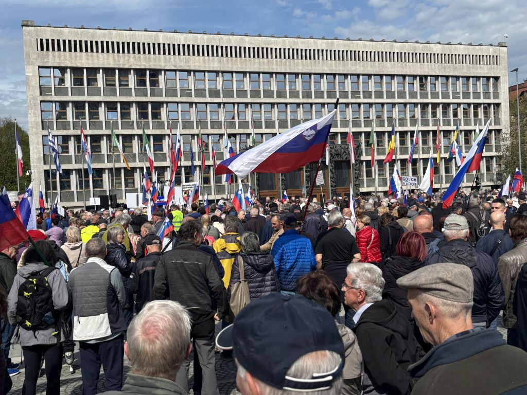Na shodu proti korupciji pred poslopjem parlamenta se je danes zbralo na tisoče ljudi, ki glasno opozarjajo na kriminalne prakse zakulisja leve slovenske politike, ki so jih razkrinkali posnetki, ki so pred volitvami zaokrožili na spletu in v javnosti. Na Trgu republike v prestolnici plapolajo številne slovenske zastave, pa tudi pomenljivi transparenti, uperjeni zlasti proti predstavnikom odhajajoče vlade, pa tudi ljubljanske mestne oblasti oziroma župana Zorana Jankovića. Tako na transparentih lahko beremo napise, kot so »Naš denar ni vaš plen«, »Ne korupciji – za pošteno Slovenijo«, »Korupcija krade našo prihodnost« in podobne. Da je prav korupcija ključni problem države, je v nagovoru izpostavil tudi predsednik SDS Janez Janša.