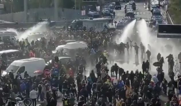 🇮🇹Italy: Police deploy water cannons to disperse anti-Green Pass protesters in Trieste.#Italy pic.twitter.com/naA7ObDUdl
