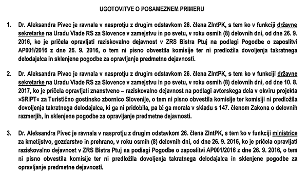 Poročilo KPK o kršitvah Pivčeve je takrat razkril Bojan Požar, kot tudi afero SRIPT. Tole je izsek poročila (vir: Požareport)