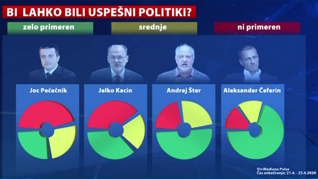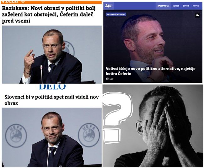 Tokrat se sklicujejo na raziskavi dveh agencij, Valicona (Delo) in Mediane (POP TV). Po prvi naj bi si Čeferina za premierja zaželelo 46 % vprašanih, Janšo 16 % in Šarca 13 %. Mediana pa je za POP TV ugotovila, da predsednika UEFE kot potencialno uspešnega politika vidi dve tretjini vprašanih volivcev (mimogrede, lepo podporo je dobil tudi nekdanji politiki SKD, Andrej Šter)