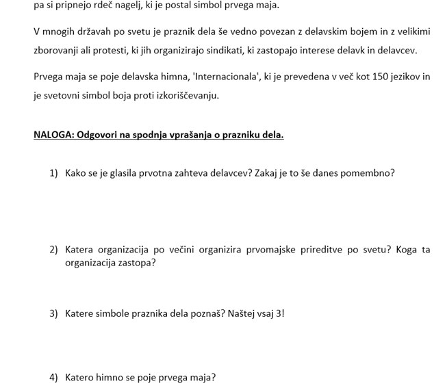 K dopisu so priložili tudi lastno gradivo s svojim videnjem praznika ter nalogami za učence.