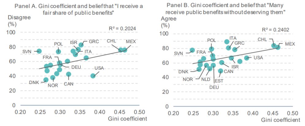 Skoraj 80 odstotkov Slovencev denimo meni, da jim socialne ugodnosti ne bi bile na voljo, če bi jih potrebovali (višji delež tako mislečih ima samo Izrael). Prav toliko nas je prepričanih, da ne dobimo poštenega deleža socialnih ugodnosti glede na davke in socialne prispevke, ki jih plačujemo.