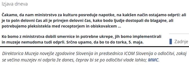 Če so pristojne oblasti pošiljale menda več ducatov strani protokolov in konkretnih navodil za ravnanje frizerjev ali gostincev v novih razmerah ohranjanja še dopustnih standardov javne higiene in socialne distance, potem si lahko predstavljamo, da vsega, kar prinaša delo z otroki, šolarji in dijaki v šolstvu ter z obiskovalci v kulturnih ustanovah, z odtujenih oblastnih vrhov preprosto ni mogoče predvideti in pripraviti vse predvidene ukrepe.