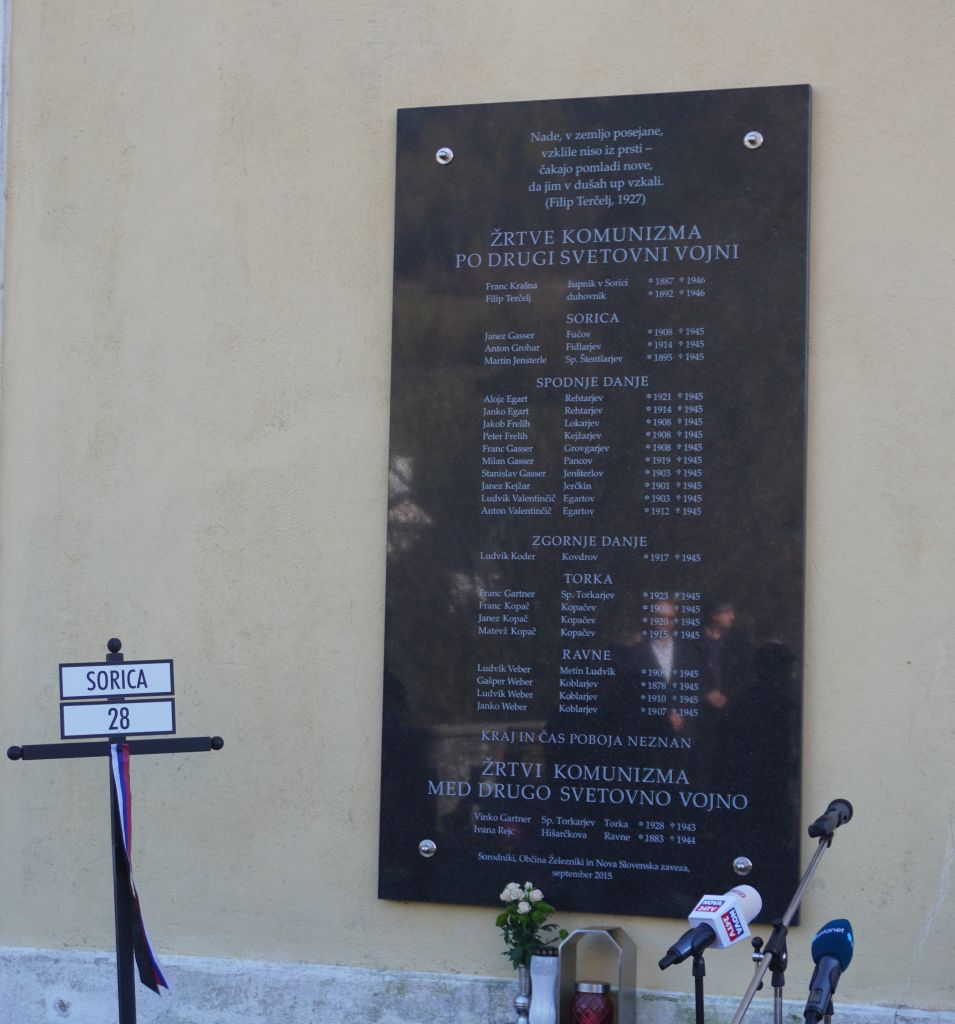 V župnijski cerkvi sv. Nikolaja v Sorici so danes na pietetni slovesnosti zaznamovali 80. obletnico izgnanstva in izginotja faranov Sorice in okoliških vasi. Po dopoldanski maši so obudili spomin na 38 žrtev vojnega in povojnega nasilja na tem območju, med katerimi so na spominsko ploščo na cerkvi leta 2015 vklesali imena do tedaj znanih 26 žrtev.
