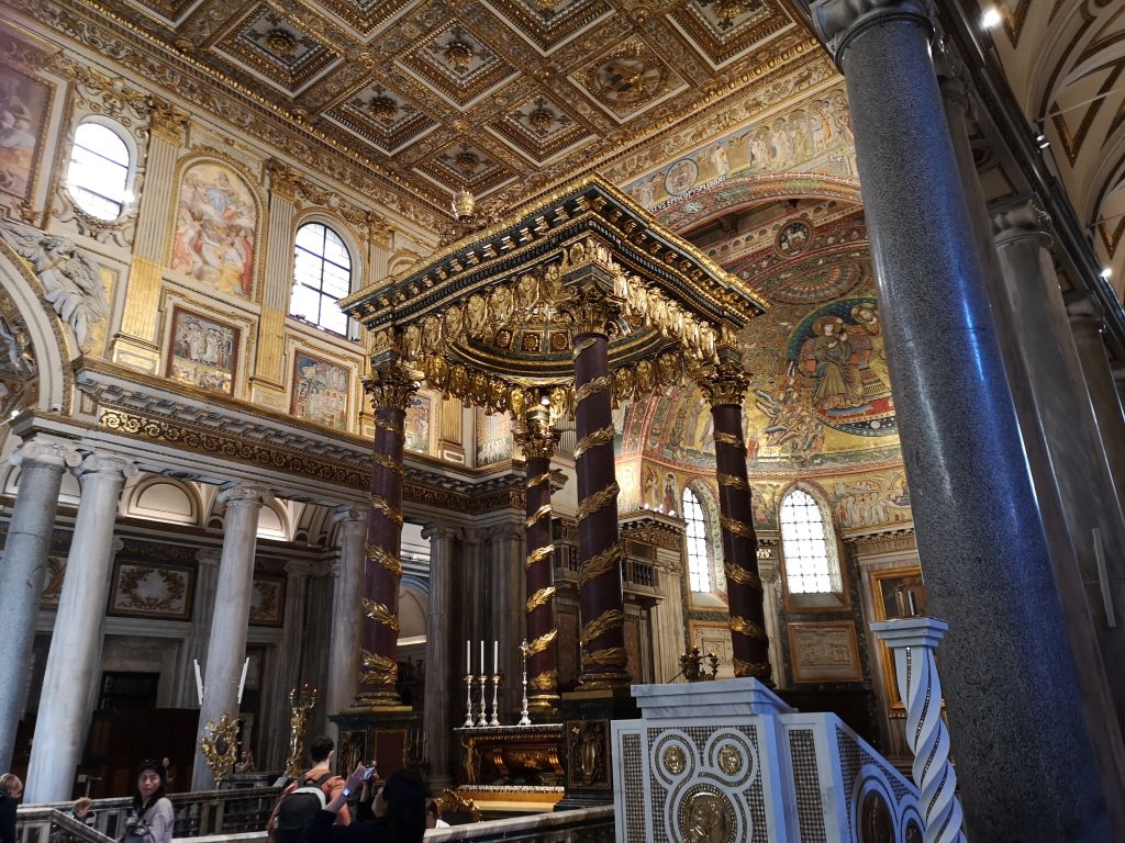 Odpravili smo se v zadnjo rimsko véliko baziliko, baziliko svete Marije Vélike ali svete Marije Snežne, ki je to ime dobila, ker je pred davnimi časi 5. avgusta v Rimu zapadel sneg. V tej baziliki si želi biti pokopan papež Frančišek kot prvi jezuitski papež. V njej sta že pokopana prvi dominikanski in prvi frančiškanski papež. Tudi zato je ta bazilika nekaj posebnega. Obenem v njej dobiš občutek, da je Marija tvoja mati. Visoki stropi so v zlatu. Tudi tu smo prestopili sveta vrata.