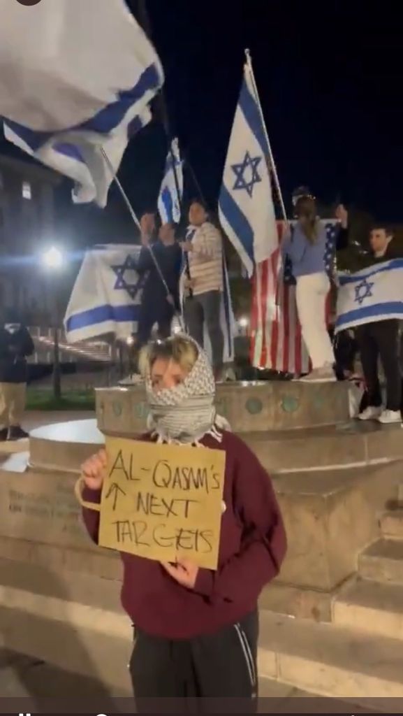 Kathy Manning, predstavnica Demokratov v ameriškemu Kongresu, ki si je ogledala Columbio, je izjavila, da je tam videla protestnike, ki so pozivali »k uničenju Izraela«. Na videoposnetkih na družbenih omrežjih lahko vidimo protestnike, ki izražajo podporo Hamasovemu napadu na Izrael, v katerem so teroristi ubili 1200 Izraelcev. Zaradi groženj in verbalnih napadov na judovske študente na Univerzi Columbia so 300 judovskim študentom poslali sporočilo, v katerem so jih svarili, naj se izogibajo kampusu, dokler se razmere bistveno ne izboljšajo.