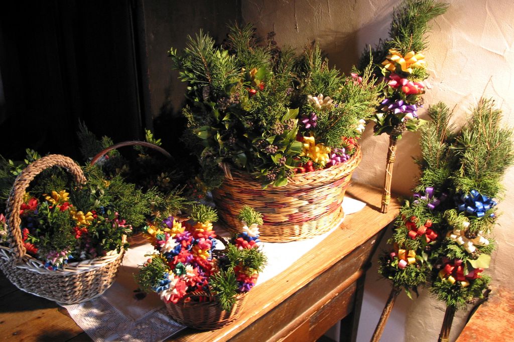Pirhi, rdeče pobarvani, pomenijo Kristusove rane – navadno jih pet položijo v jerbas.