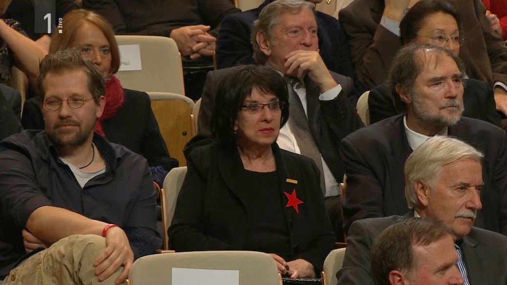 Ob dveh "telesnih stražarjih" – aktivistu Jaši Jenullu in pesniku Borisu A. Novaku – so ostareli umetnici dopustili, da po koncu uradnega dela izpelje svoj šov – v eter pa jo je že po odvrteni špici spustil tudi režiser programa nacionalne televizije.