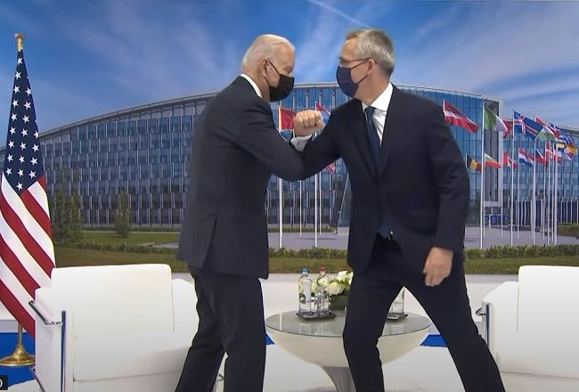 Gre za prvo srečanje voditeljev NATO, odkar se je v Belo hišo preselil Joe Biden. V pogovoru z generalnim sekretarjem zveze NATO Jensom Stoltenbergom je poudaril zavezanost ZDA do zavezništva ter dodal, da je močan NATO za ZDA ključen. Peti člen zavezništva, ki zagotavlja kolektivno obrambo, je označil za svetega, spomnil pa je tudi na potrebo po povečanju obrambnih proračunov držav članic.