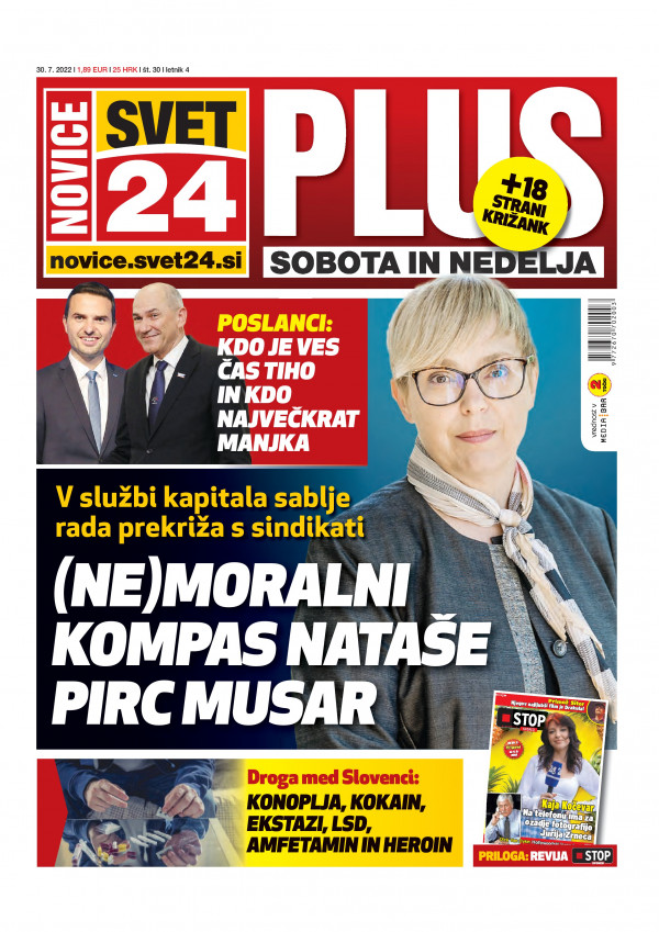 Konec julija se je na naslovnici Svet24 znašla fotografija Nataše Pirc Musar, ki je pred kratkim stopila v predsedniško tekmo in ji uredništvo očita Nemoralni kompas, ker v službi kapitala prekriža sablje z sindikati. Čeprav gre za precej čudno obtožbo, pa se na levi strani naslovnice sveti še en naslov.