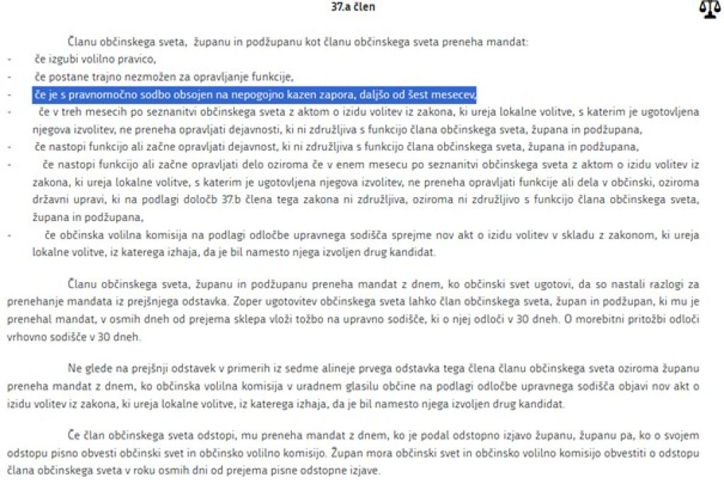 Janković bi bil lahko na razrešen samo, izvzemši ostale razloge, če bi bil pravnomočno obsojen na nepogojno zaporno kazen, daljšo od šestih mesecev.