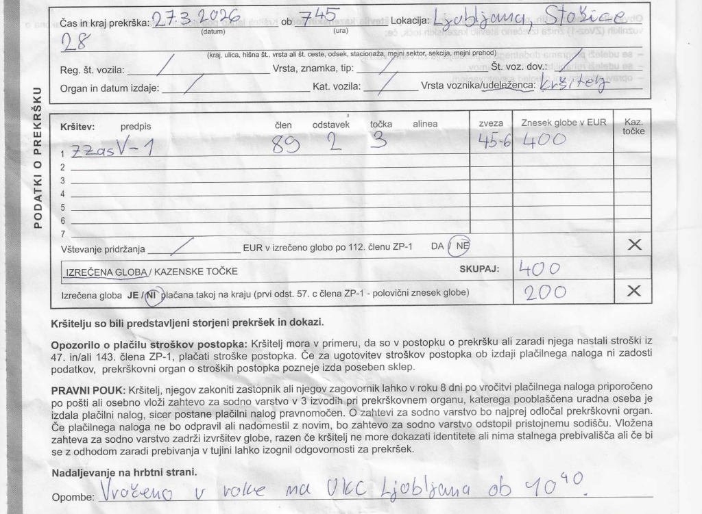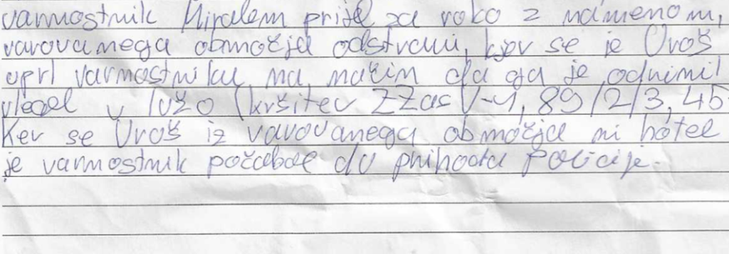 Priporočilo Policiji: policaja, ki je napisal zapisnik, poslati v večerno šolo, da se nauči pisati.
