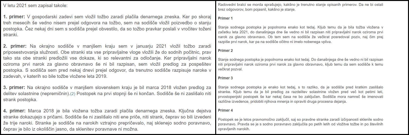 Novembra 2021 je Jernej Orešek, odvetnik, v reviji Odvetniške zbornice Slovenije napisal članek z naslovom (Ne)učinkovitost delovanja slovenskih sodišč. Predstavil je 4 primere iz svojega delokroga, v katerem so po njegovem mnenju sodišča neučinkovito vodila sodne postopke.