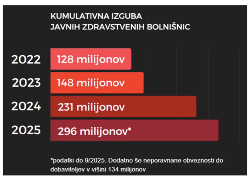 Slovenski javni zdravstveni sistem mandat aktualne vlade zaključuje v finančno zahtevnem stanju. Medtem ko koalicijo sestavljajo Gibanje Svoboda, Levica in Socialni demokrati, številke največjih zdravstvenih ustanov kažejo visoke izgube, vprašanja glede nabav medicinskega materiala pa ostajajo odprta.