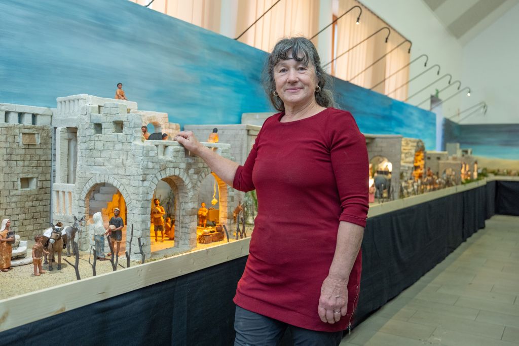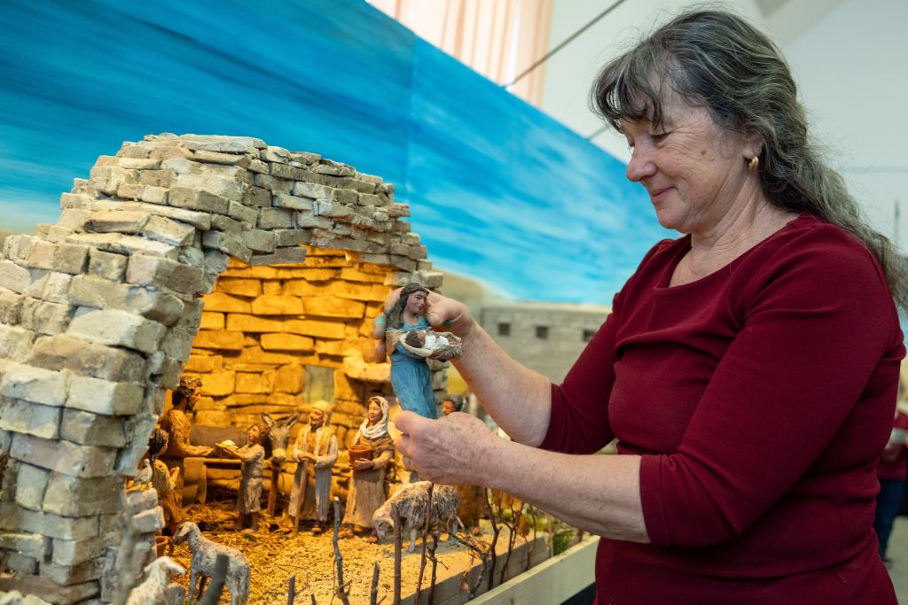 Navdih za jaslice ga. Majda črpa iz Jezusovega življenja, podobe pa skuša približati tudi domačemu človeku in slovenski kulturni dediščini.