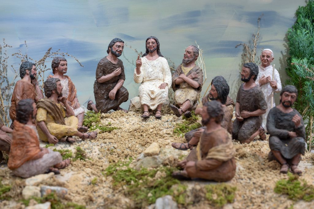 Prav tako v jaslicah lahko poiščemo figurice z obrazi nekaterih njihovih znancev in svetovno znanih osebnosti. Med njimi so tako igralec in publicist Gregor Čušin in dolgoletni župnik v Preserjah Lojze Kočar, pa tudi misijonar Pedro Opeka, papež Frančišek in slovenski škofje. »Za farizeja bi pa lahko Goloba naredila zdaj,« se pošali Peter in za omizjem zadoni prešeren smeh.
