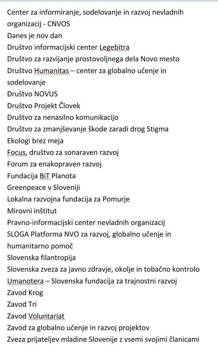 Ne nas basat "nevladne organizacije"!!! Večino jih je treba TAKOJ ukinit in večina si mojega denarja NE ZASLUŽI. Take zajedalce bi morali poslat delat na tekoče trakove. 2 šihta dnevno. Kakšni dve desetletji.