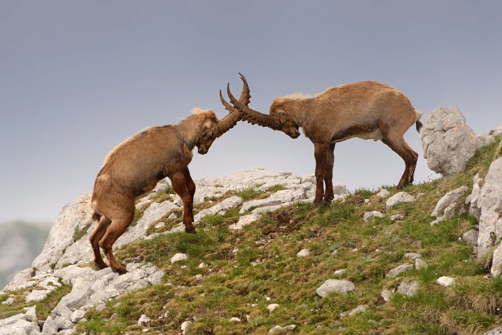 Alpski kozorog je rjavkasto-sive barve. Živi na strmih pobočjih v bližini snežne meje.