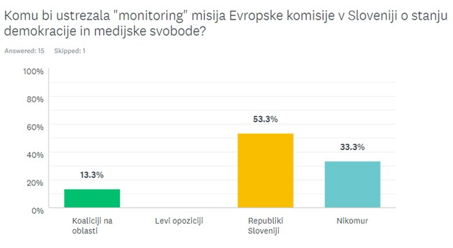 Na koncu nas je še zanimalo, kaj bi, če bi do nje prišlo (zdaj vemo, da je ne bo), prinesla "monitoring" misija Evropske komisije v Sloveniji o stanju demokracije in medijske svobode, oziroma komu bi ustrezala.