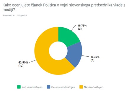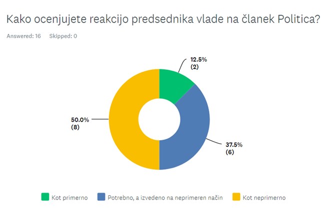 Ko pa gre za vprašanje reakcije slovenskega predsednika vlade nanj, pa jih polovica ocenjuje, da je premierjev odziv neprimeren, šest jih meni, da je bil sicer potreben, a izveden na neprimeren način, dva pa ga smatrata za primernega.