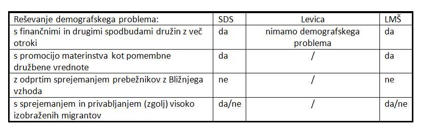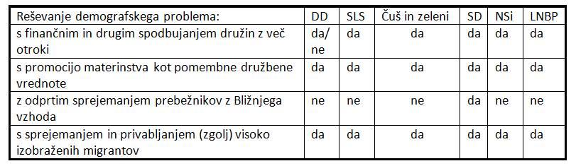 Izpostavljena stališča strank glede migracij, demografije in pokojninske problematike (iz programov in iz soočenj)